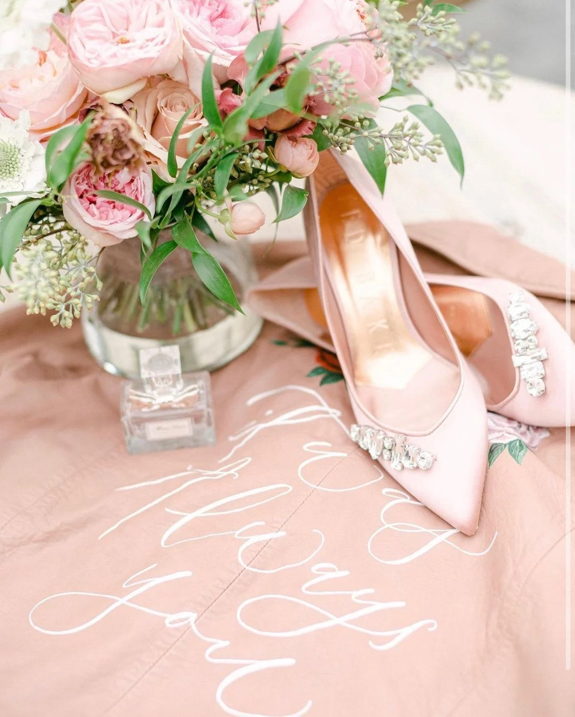 Custom painted jackets, napkins, keepsake hangers, welcome bags, cake toppers… a small sampling of the highly personal touches our clients have asked us to create for them.